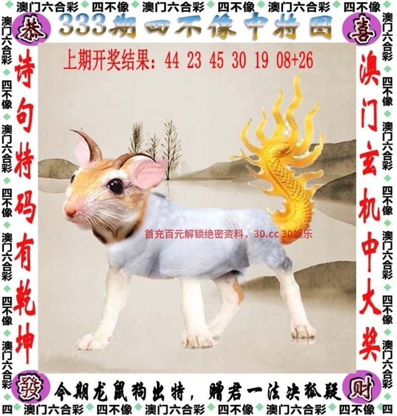 | 333期:五段中特【1.2.4.5.6段】开:鼠06中 |