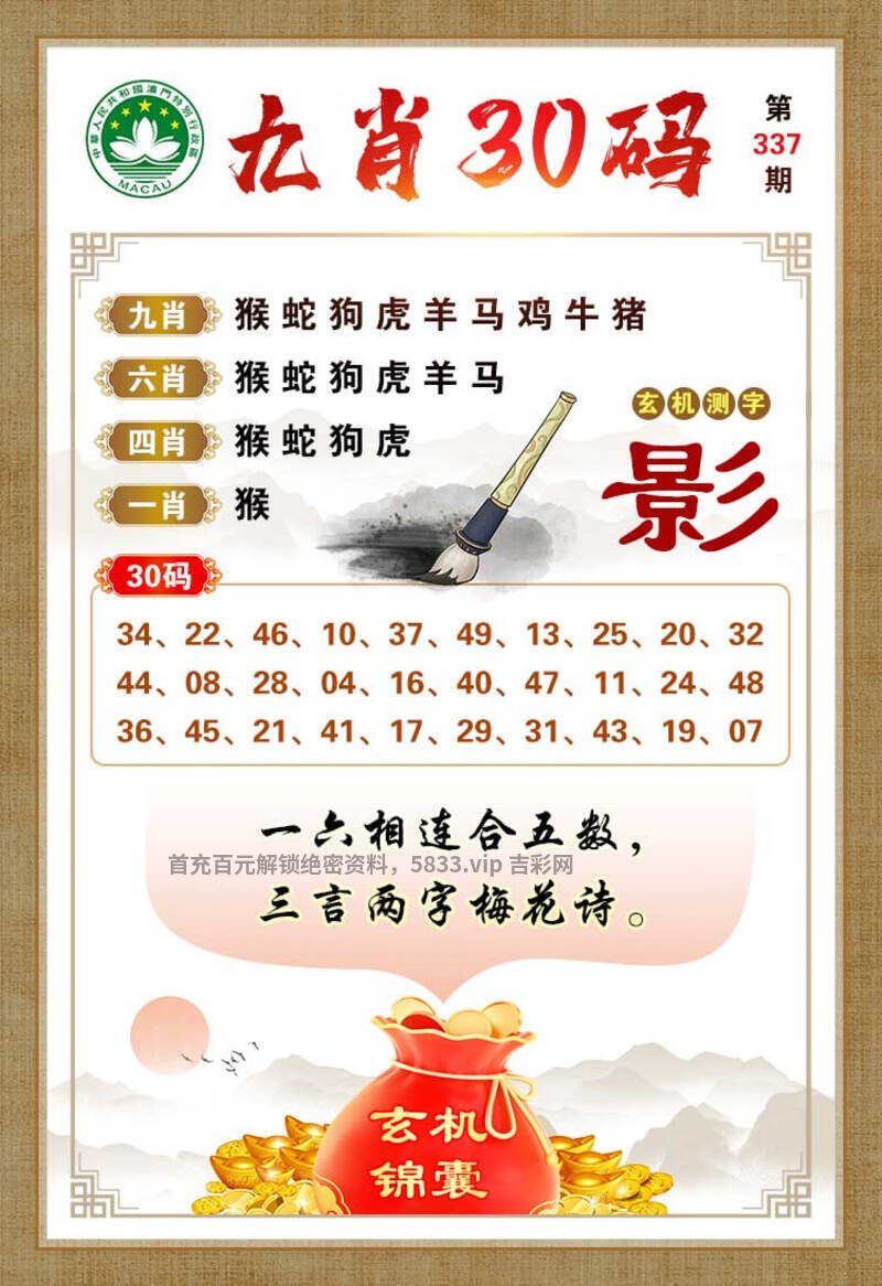 | 334期:【绝杀二尾】【3.9尾】开:猴46中 |